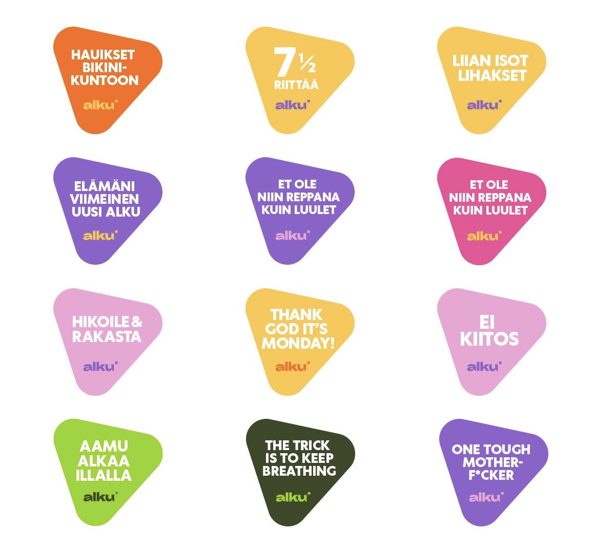 Koristele kaikki paikat iloisilla inspiraatiotarroilla! Tee kaverit kateellisiksi ja tapetoi läppäri, vesipullo ja jääkaapin ovi mietelauseilla. Näin et pääse unohtamaan, että et ole niin reppana kuin luulet ja että aamu alkaa illalla. Hinta sisältää A4 tarra-arkin, tulevan vuoden asenteen sekä postikulut. Tuote lähetetään huomaamattomassa kirjekuoressa kuin sätisfaier konsanaan, mutta sitä et ehkä esittelisi palaverissa, toisin kuin iloisia tarroja!
